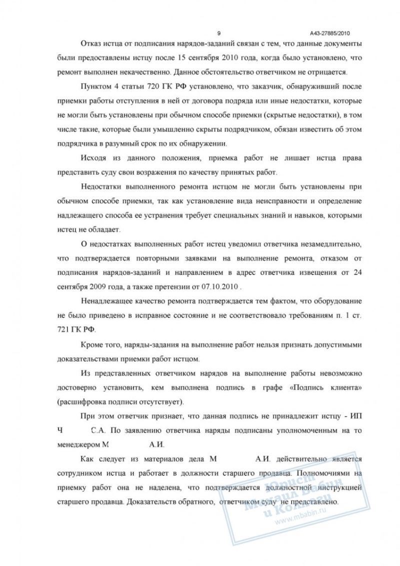 • факт заключения договора на ремонт оборудования и его неоднократное некорректное выполнение подтверждены актами приёмки-передачи, заявками на ремонт и перепиской сторон;