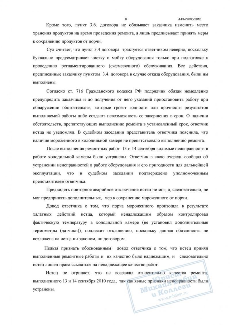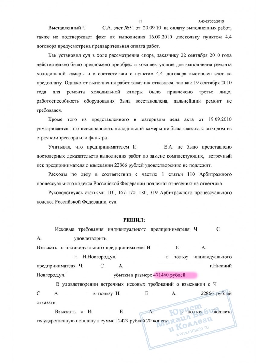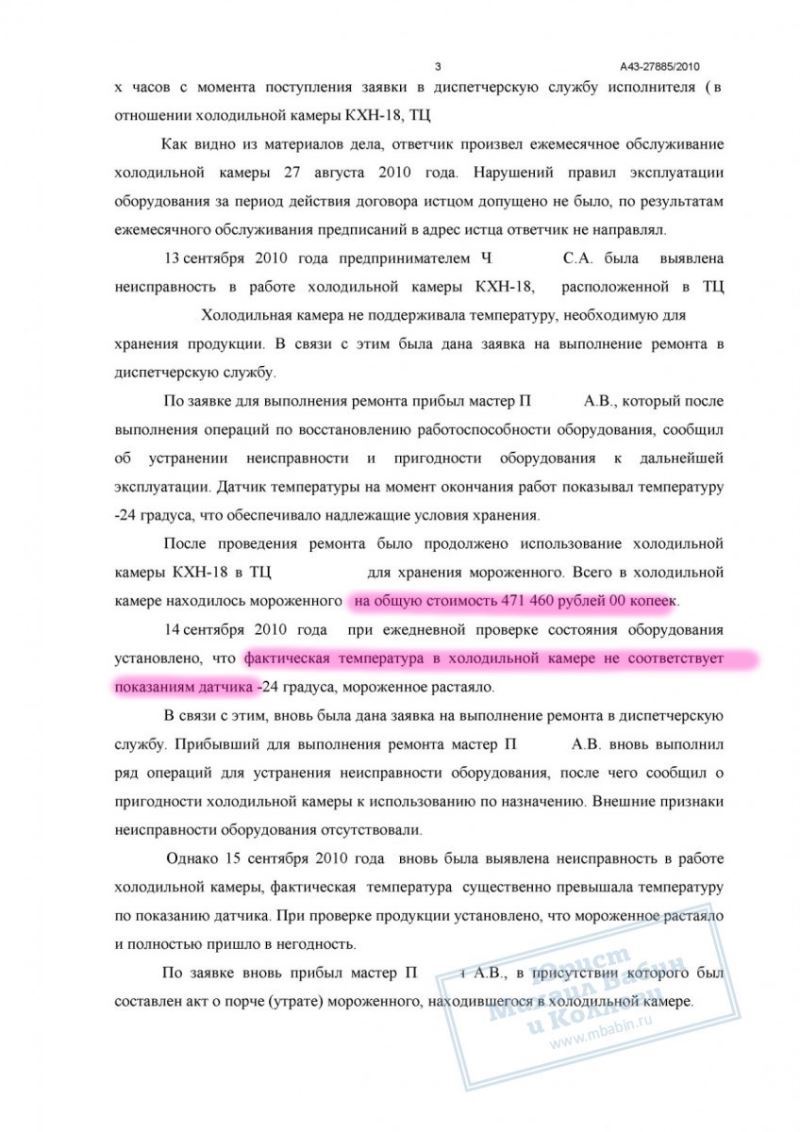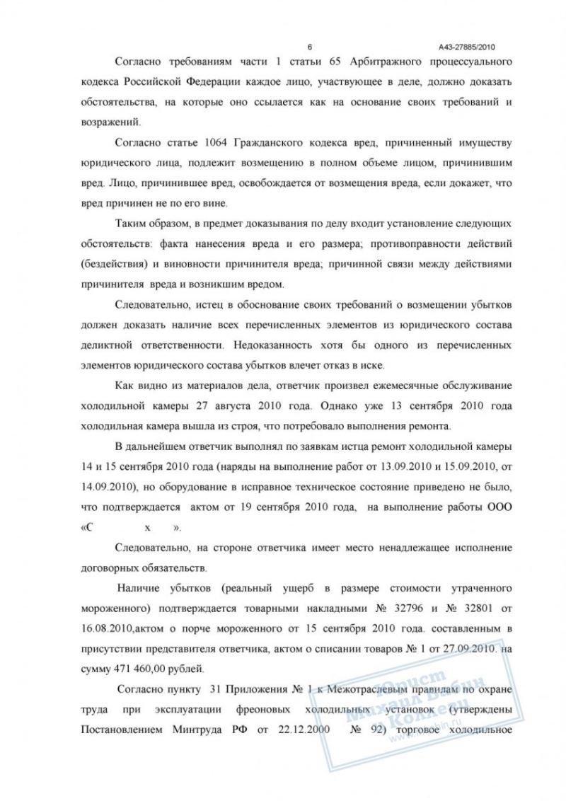 Некачественный ремонт холодильного оборудования привёл к порче товара на 470 000 руб. Исполнитель отказался возмещать ущерб. Юрист доказал причинно-следственную связь, и суд взыскал всю сумму убытков и судебные расходы.