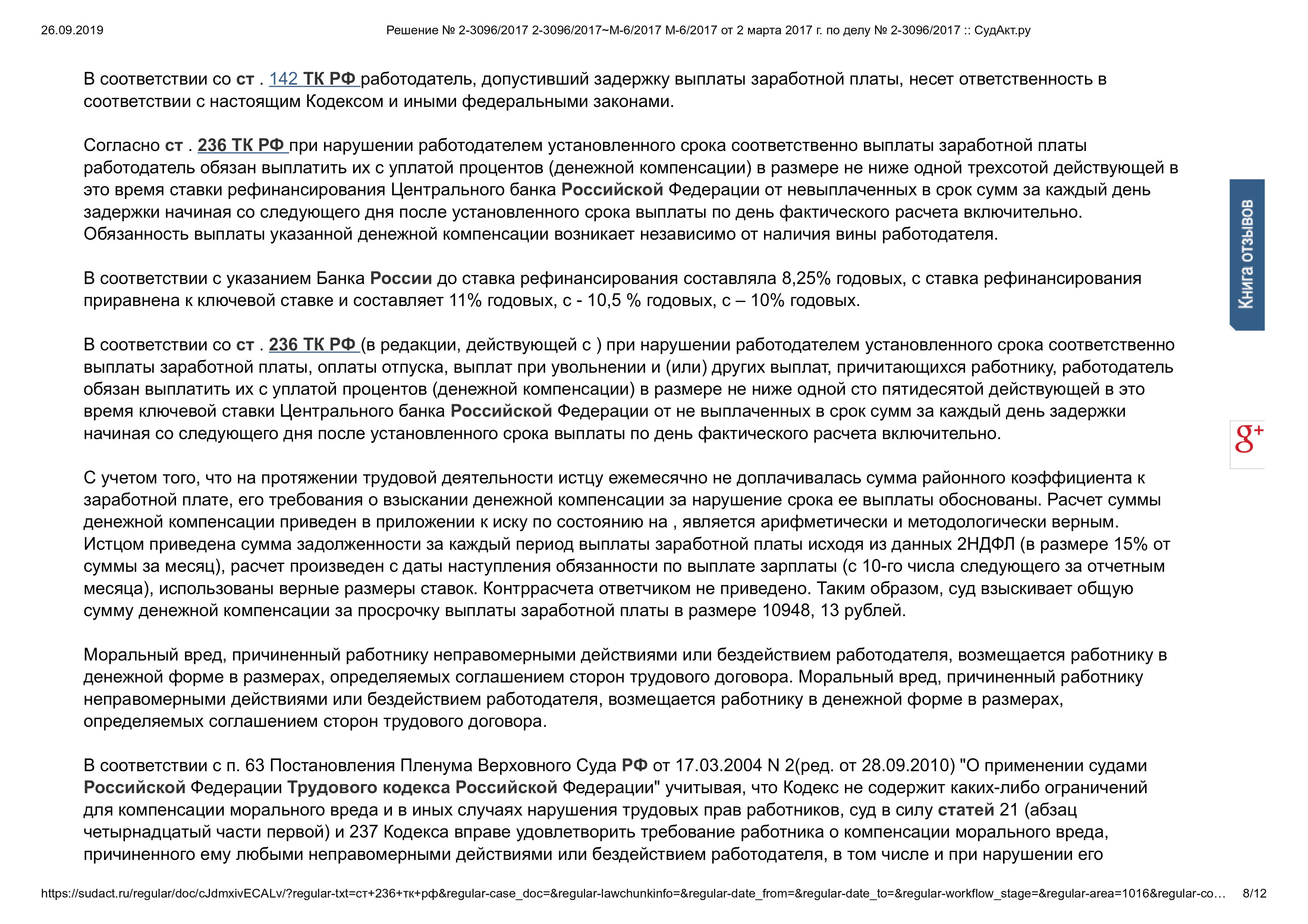 Компенсация за задержку заработной платы