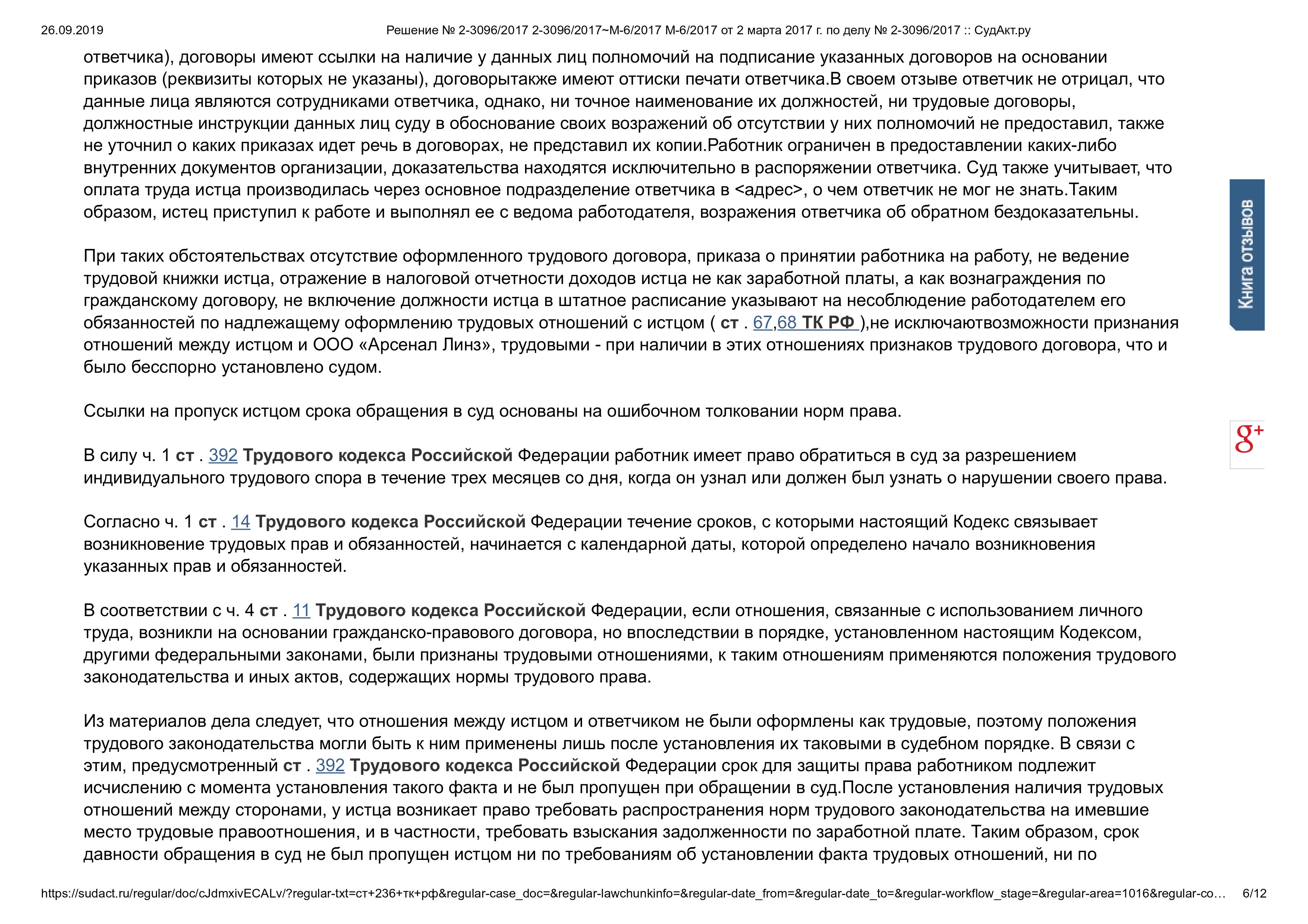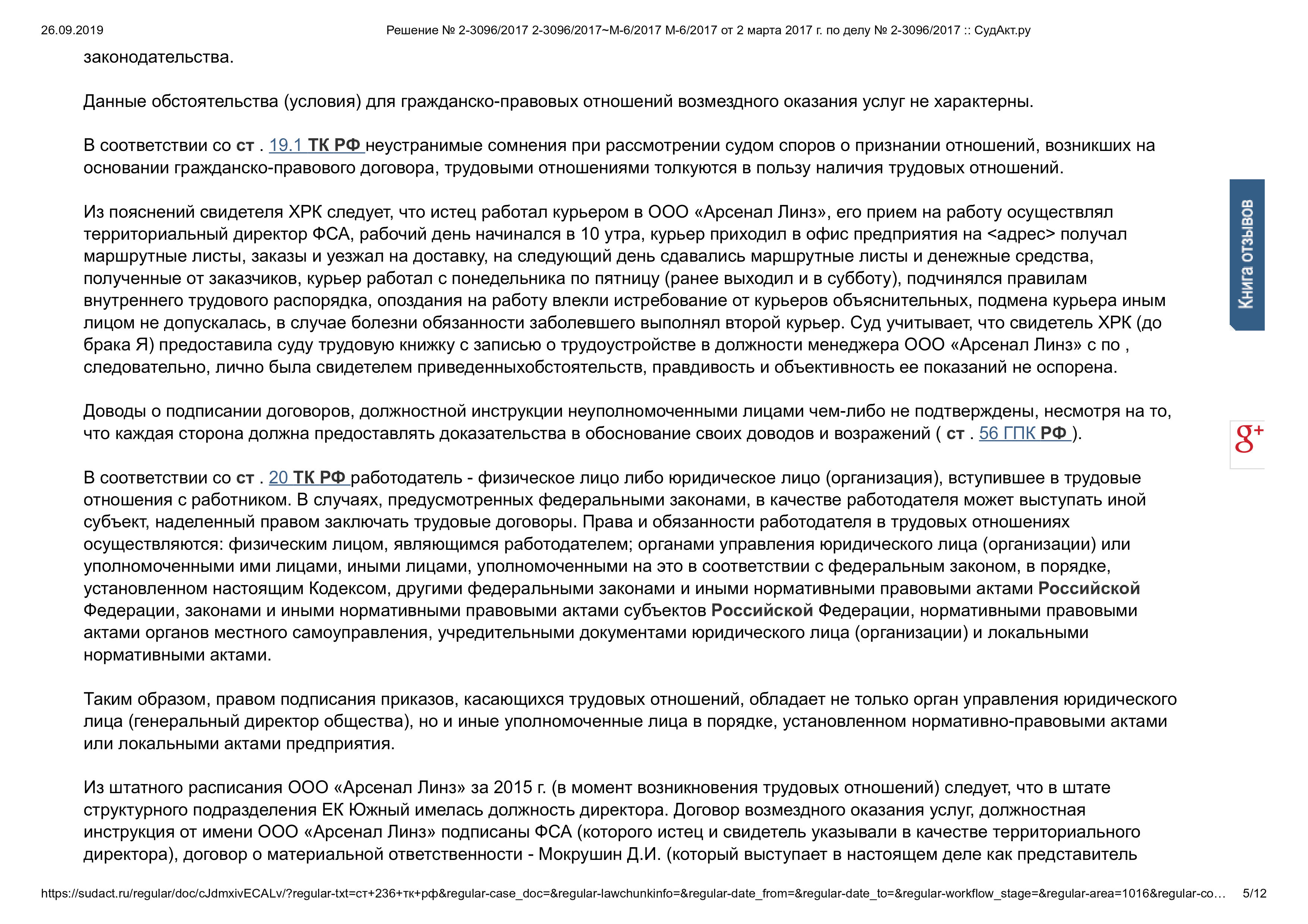 Суд решил обязать ответчика внести в трудовую книжку запись о приеме на работу на должность курьера. Взыскать с ответчика в пользу истца задолженность по заработной плате в размере 79097 рублей 85 коп. (с последующим вычетом необходимых налогов и сборов), денежную компенсацию за задержку выплаты заработной платы в размере 10948 рублей 13 коп., компенсацию морального вреда в размере 3000 рублей.