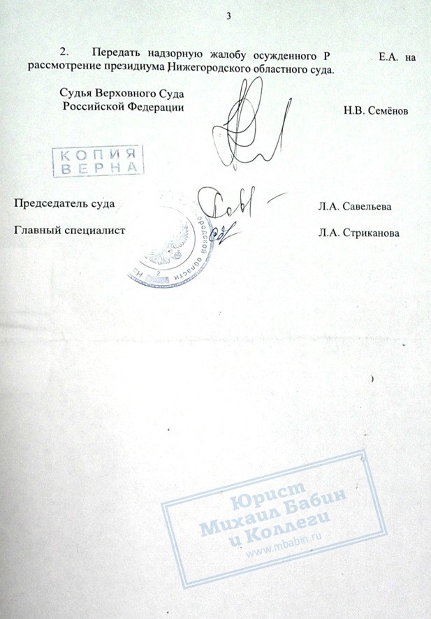 Адвокат подготовил жалобу в Верховный Суд РФ о пересмотре дела нашего клиента в связи с открывшимися смягчающими обстоятельствами. Жалоба была удовлетворена.
