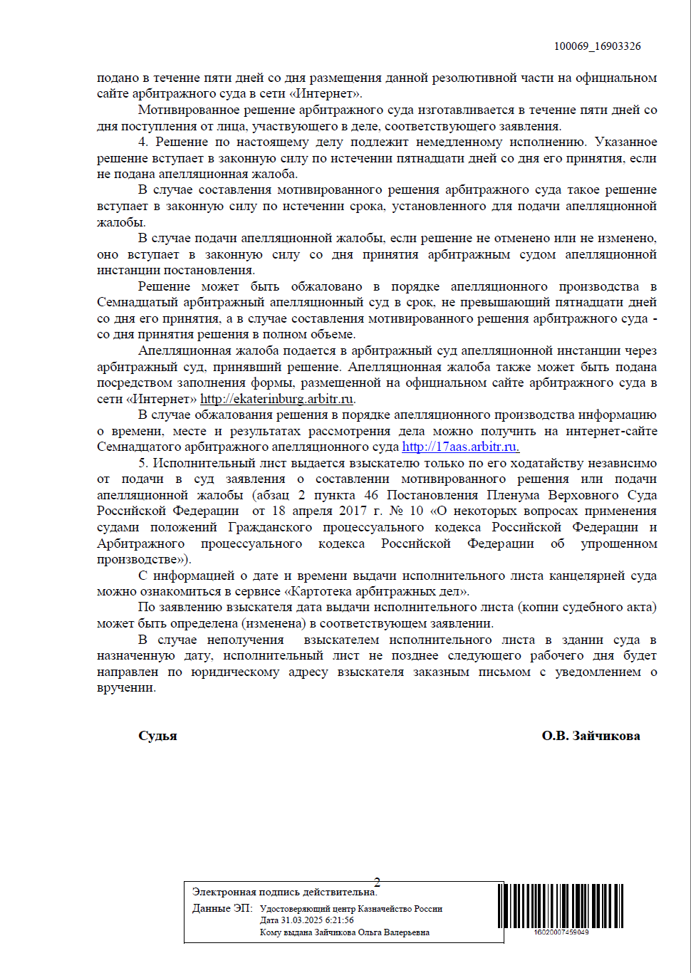• Мы заявили к взысканию нестандартную, точно рассчитанную сумму — 176 700 рублей. Часто суды снижают компенсацию, руководствуясь принципами разумности, если ответчик заявляет о несоразмерности. Однако в данном случае суд, рассмотрев материалы, встал на сторону правообладателя и удовлетворил требование о компенсации в полном объеме.