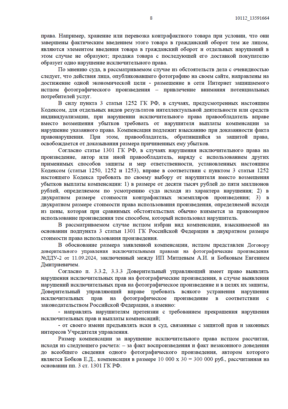 Суд полностью принял нашу позицию, взыскав с нарушителя всю заявленную компенсацию и возместив судебные расходы клиента.