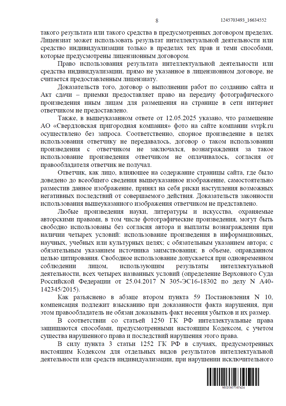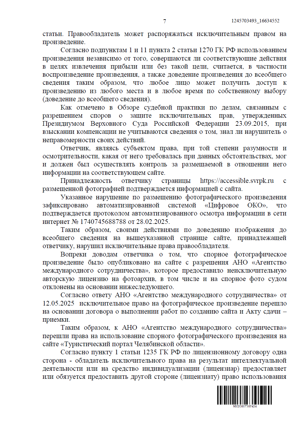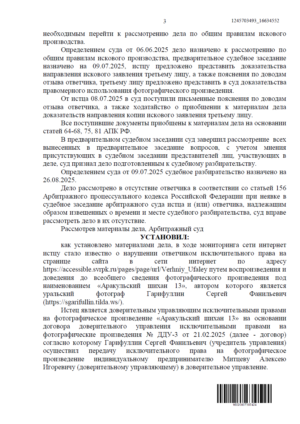 Однако популярность фотографий неизбежно приводит к рискам — изображения нередко используют без разрешения. Чтобы защитить свои права и сохранить контроль над собственным творчеством, Сергей обратился к нам. За юридическое сопровождение отвечал Егоров Андрей, который помог зафиксировать нарушения, подготовить необходимые документы и выстроить стратегию защиты.