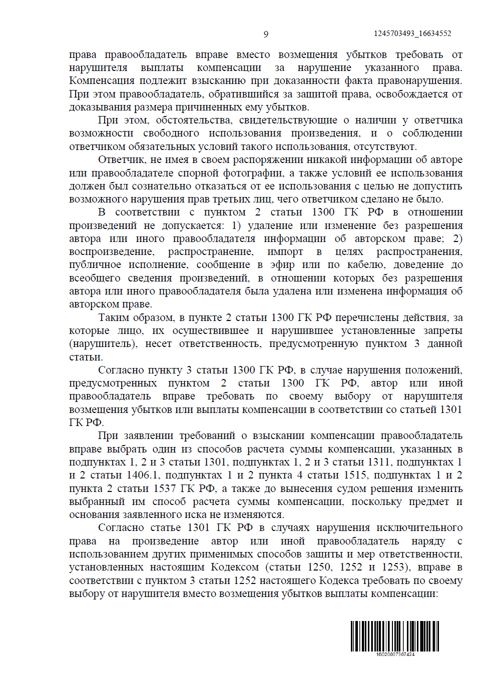 • Нарушение исключительных прав на фотографическое произведение